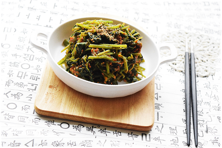여러 나물무침을 즐길 때 된장양념을 사용하시는 분들도 계신다. 된장이 나물류와 궁합도 잘 맞고 나물의 부족한 양념을 더하는데 된장이 큰 역할을 하기도 한다. 그러니 되장양념을 더 선호하시는 분이라면 다른 재료들은 그대로 유지하면서 소금만 간장으로 대체해도 좋다. 된장 1큰술, 들기름 1큰술, 마늘 1큰술, 다진파 1큰술로 양념을 만들어주면 된다. 된장양념에서 간은 된장이 맞춰주기는 하나 된장의 특성상 양념을 버무린 후 추가적으로 넣기에는 제한이 된다. 이경우에는 복잡할 것 없이 소금만 추가적으로 더 넣어서 간을 맞추면 된다.