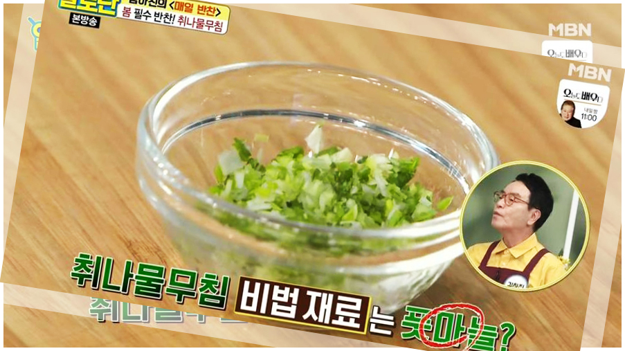만약 취나물을 다 데쳤다면 찬물에 헹군 다음 물기를 꼭 짜서 준비한다. 물기를 완전히 제거해도 좋지만 바로 양념과 함께 버무릴 예정이라면 어느정도 물기가 있다고 해도 상관없다. 그러니 너무 흥건하지 않게끔만 물기를 제거해주면 된다. 준비된 취나물을 버무리는 방법은 간단하다. 준비된 양념들 국간장 반큰술, 들기름 1큰술, 꽃소금 2꼬집, 마늘 반큰술, 다진파 1큰술, 통깨 약간을 모두 넣고 버무려주기만 하면 된다.