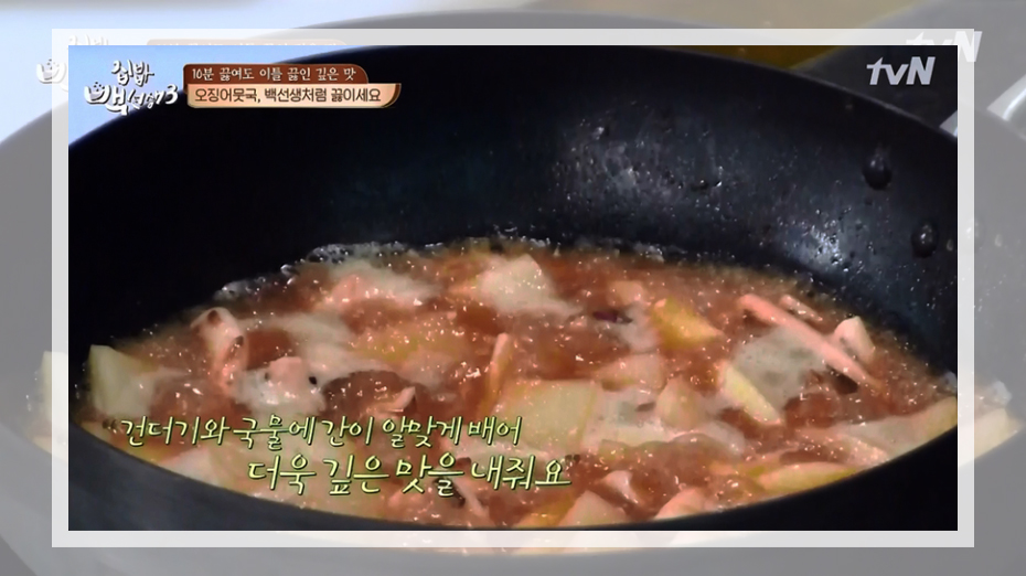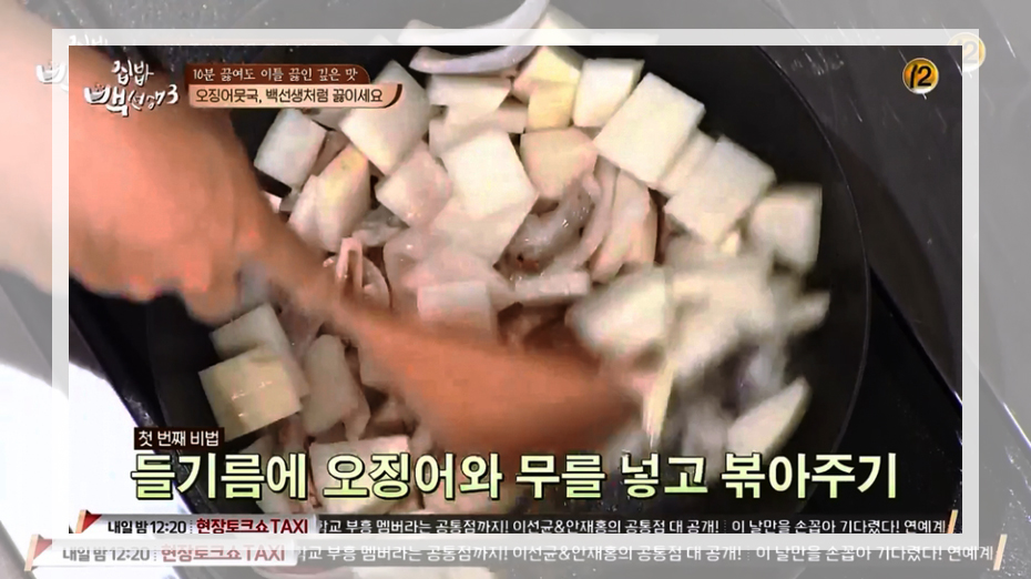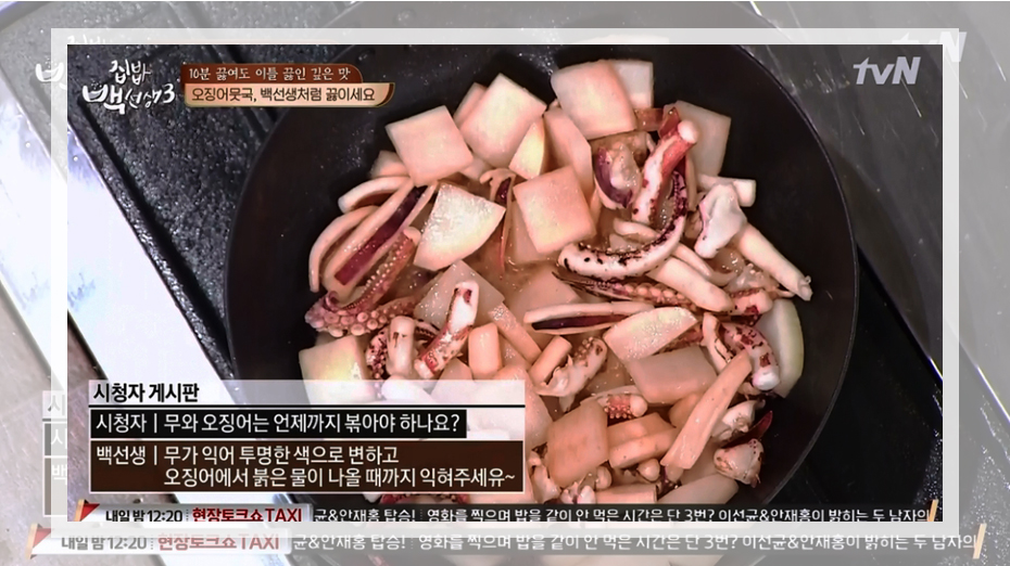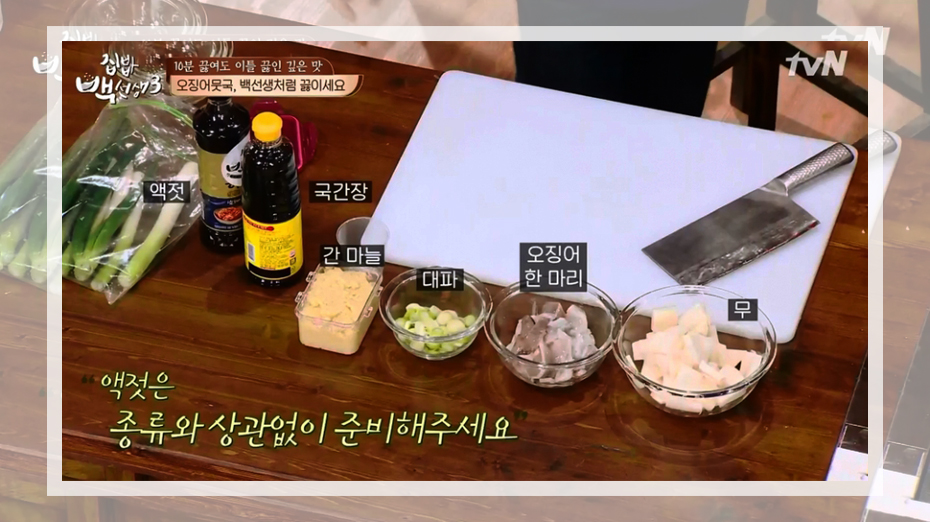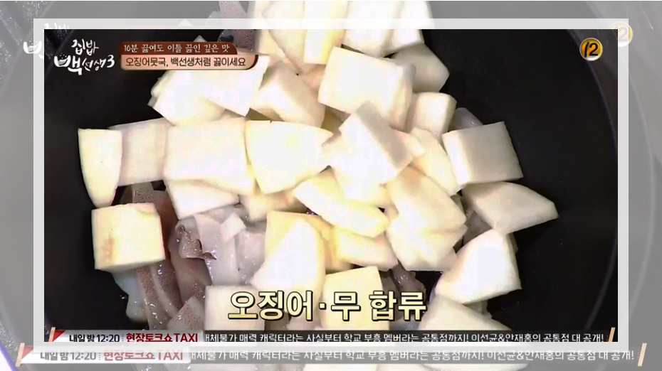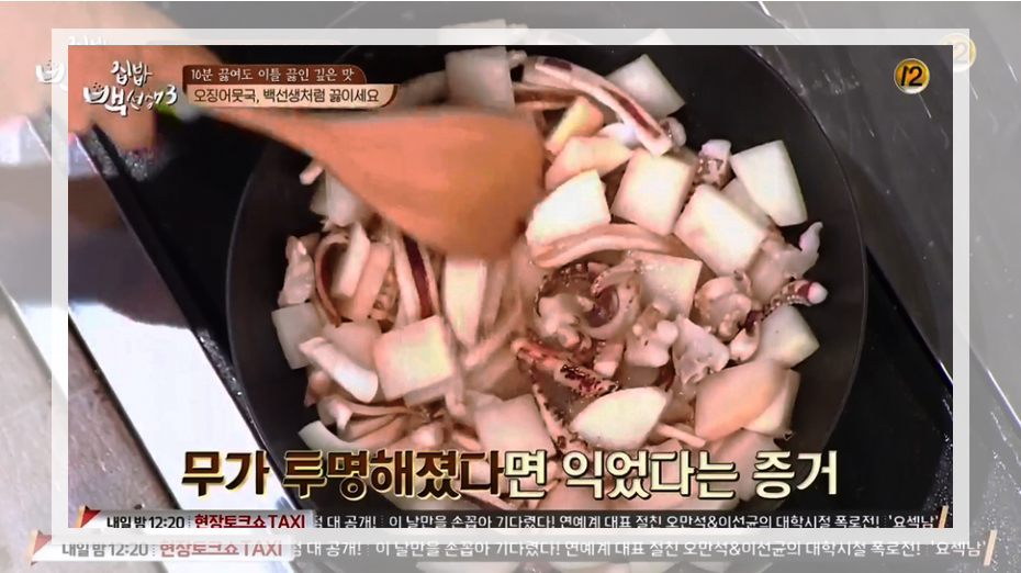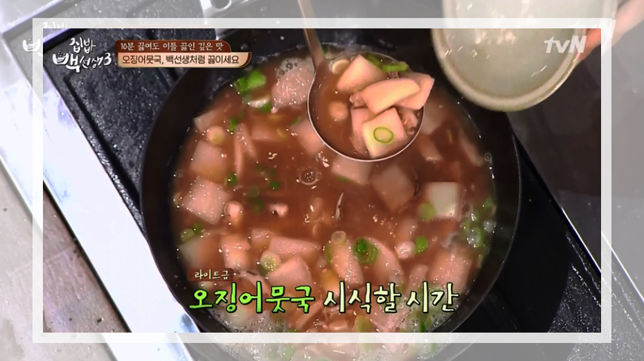 오늘은 백종원 선생님이 집밥백선상에서 공개한적 있는 오징어무국 황금레시피에 대해서 알아보려고 한다. 사시사철 쉽게 즐길 수 있는 이 오징어라는 재료는 분명 우리의 식탁을 풍족하게 하는 좋은 재료이다. 물론 가을을 제철로 가장 맛있는 오징어를 즐기기 위해서는 좀더 기다림을 가져야 하겠지만 항상 돌고 도는 찌개와 국의 루틴에서 벗어나고 싶다면 오징어 무국으로 한번 입가심을 하는 것도 좋은 선택지가 될 것이다. 물론 먹고난 뒤라면 어느새 이 오징어무국이 돌고도는 루틴에 포함될 수도 있다.