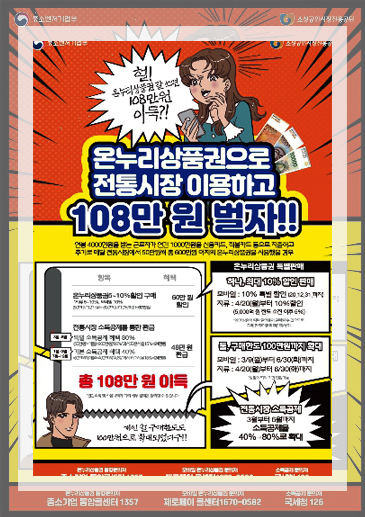 우선 온누리상품권이 어떤 상품권인지 알아보자면 소상공인시장진흥공단에서 만들어낸 상품권의 종류로 전통시장에서 사용가능한 상품권을 말한다. 해당가격보다 5~10%할인을 적용받을 수 있어서 전통시장을 이용하는 이들에게 많이 사용되는 상품권이 바로 온누리상품권이다.