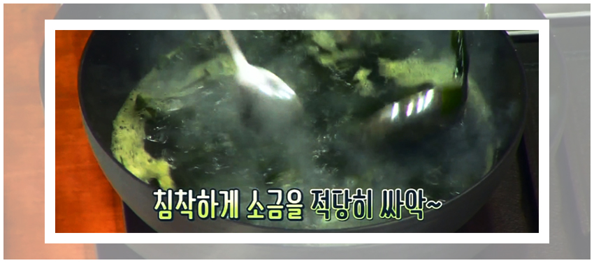 홍합에 액젓까지 들어간 상태로 팔팔 끓였다면 이제 소금으로 간을 맞추면 된다. 미역국이 특히나 개인 입맛을 많이 타는 음식이라 정량을 하는 게 무의미하다고 생각 든다. 꼭 직접 간의 봐 가면서 소금으로 간을 맞추도록 하자.