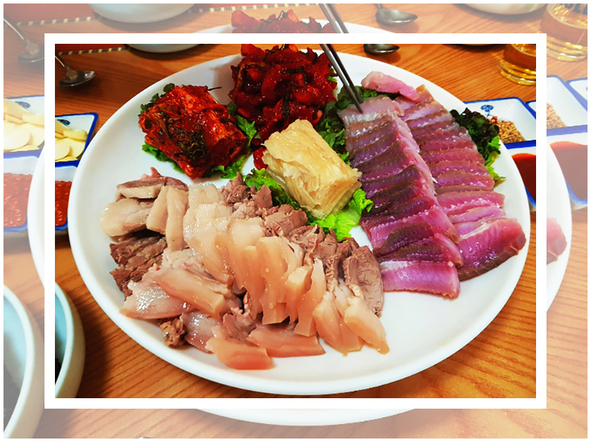 이제 다양한 방법을 통해 수육을 즐기기만 하면 된다. 필자는 딱 무말랭이와 새우젓만을 통해 수육을 즐기는 편을 선호한다. 겉절이가 있다면 정말 좋겠지만 없을 경우 무말랭이가 그 역할을 톡톡히 한다.