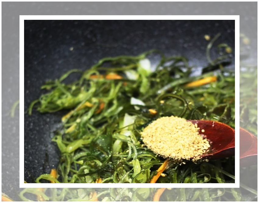 미역이 모든 과정을 거쳐서 조리 직전까지 손질이 완료되었다면 이제 본격적으로 미역줄기볶음 만드는 법의 조리과정으로 들어설 수 있다. 맛술 2큰술, 맛소금 2큰술, 다진 마늘과 간장 반 큰 술씩 등의 양념들과 함께 미역줄기, 당근, 양파를 모두 팬에 넣어서 볶아준다.