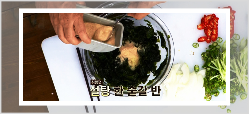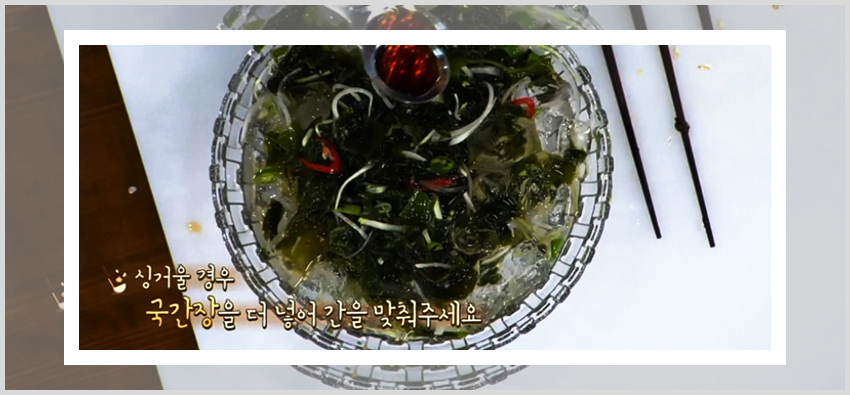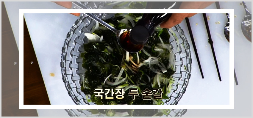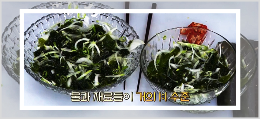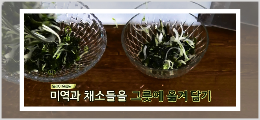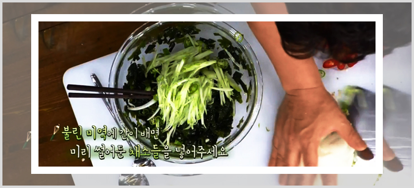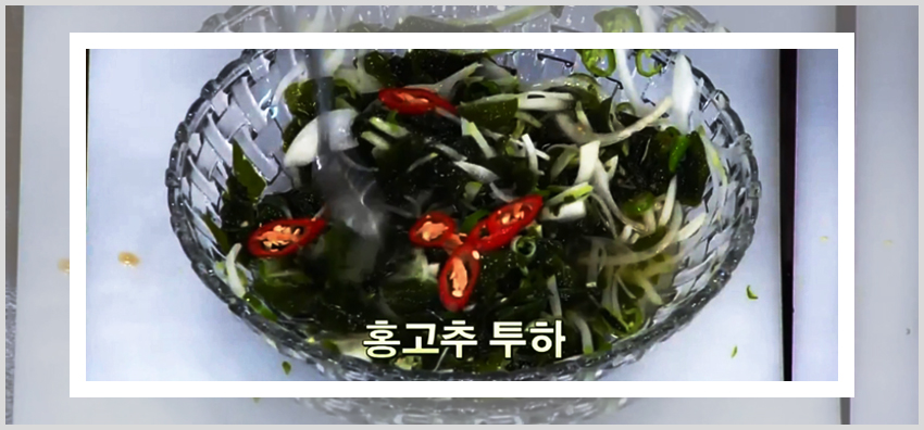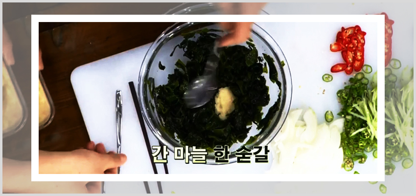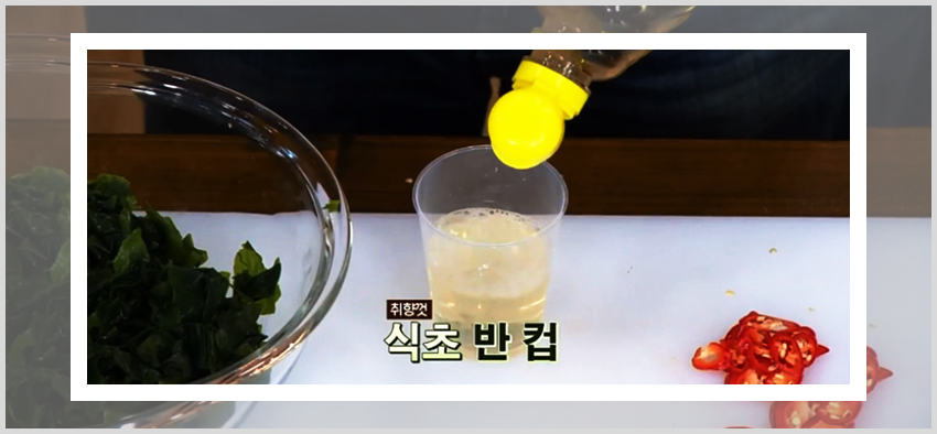 백종원 미역 오이냉국 만드는 법이 편한 이유는 아무래도 레시피를 진행하는데 있어서 불을 이용한 조리과정이 없기 때문이다. 미역을 불려주기만 한다면 각 재료들을 손질해서 준비하고 양념재료에 버무려주기만 하면 된다. 즉 미역과 채소들을 양념과 함께 버무려줄 재료만 준비해준 상태에서 각 양념재료를 넣어주면 된다. 넓은 볼에 손질해둔 미역을 먼저 넣고 식초 반 컵, 다진 마늘 1큰술, 설탕 1큰술, 액젓 2큰술을 넣고 버무려준다.