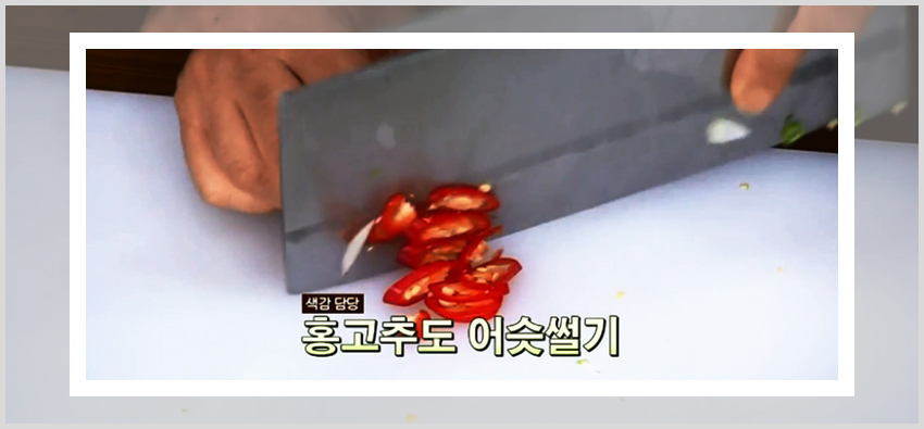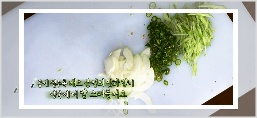 그다음 오이 반개, 양파 반개, 청양고추 2개를 깨끗하게 세척한 다음 먹기좋은 크기로 썰어주면 된다. 오이는 채를 썰어도 되고 반달 모양으로 얇게 준비를 해도 좋다. 어떻게 자르던 본인이 먹기에 편한 모양으로 썰어주면 되는 것이다. 그리고 홍고추의 경우 앞서서도 언급했지만 필수적인 재료가 아니다. 어디까지나 색감을 이뻐지게 만들기 위함이니 있다면 준비해주고 없다면 준비하지 않아도 크게 상관없다.