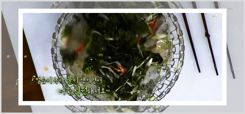 이제 다 버무려진 미역 오이냉국은 양파, 고추, 오이를 넣고 다시한번 잘 버무려준다. 다 버무려졌다면 이제 완성된 미역 오이냉국에 물을 1.5컵을 넣어준다. 재료들과 물의 비율이 거의 1:1을 이룬다고 생각하면 된다. 물까지 부어 놨다면 마지막으로 간장 2큰술과 얼음을 넣고 마지막으로 휘휘 저으며 섞어주면 된다. 이제는 완성된 오이냉국을 맛있게 즐기면 된다. 여름철 무더위를 해결하며 백종원 미역 오이냉국을 맛있게 즐기기 바란다.