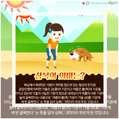 무려 40도에 육박하는 무더위가 찾아오는 요즘의 여름은 대개 7월 말경에 찾아오니 이 중복은 나름 지금에서도 적절히 들어맞고 있음을 보여주고 있다.