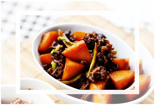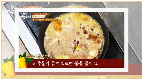 당근과 양파를 추가로 넣을 때 만약 다른 재료도 넣고 싶다면 이때 넣어주면 된다. 그 상태로 일차적으로 끓였을 때와 마찬가지로 약불에 20분가량을 끓여주면 된다. 20분 후에 양념이 적당히 졸여져 있으며 국물 위로 소고기의 기름이 보인다면, 그리고 양파가 투명한 느낌이 든다면 완성된 것이다.