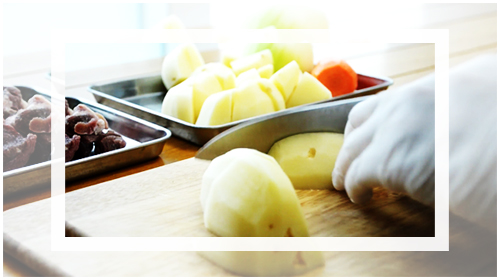 감자는 껍질을 제거하고 깨끗이 행궈서 4등분에서 잘라준다. 당근은 겉의 거뭇거뭇한 부분을 깨끗이 세척해 제거해준 다음 감자과 비슷한 크기로 썰어주면 된다. 양파의 경우도 마찬가지로 깨끗이 손질해서 4 등분해주면 된다.