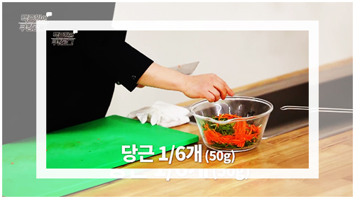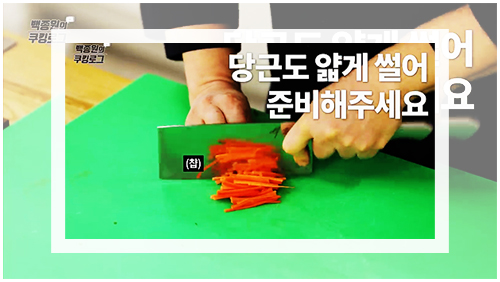 부추는 흐르는 물에 깨끗이 헹궈준 다음 적당한 크기로 자르면 된다. 손가락 두 마디 이하의 길이 정도로 잘라주면 반죽을 만들기에도, 이후에 먹을 때도 훨씬 먹기 좋을 것이다. 당근도 마찬가지로 깨끗이 헹궈준 다음 얇게 채를 썰어주면 된다.
