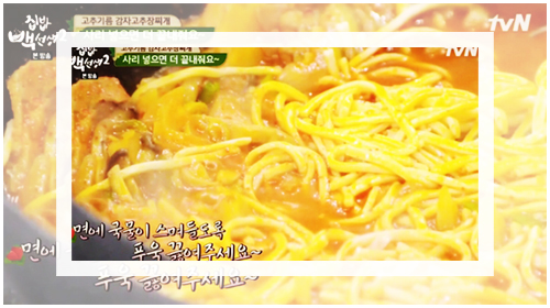 볶음고추장이 물에 녹아들도록 주걱을 이용해 풀어준다. 꼼꼼히 풀어줄 필요는 없고 어느 정도로만 풀어주면 된다. 양념까지 풀어졌다면 이제 각종 채소를 넣어주면 된다. 다만 느타리버섯처럼 부드러운 재료는 나중에 넣어줘야 한다. 마찬가지로 고추와 대파도 나중에 넣어줘야 한다.
