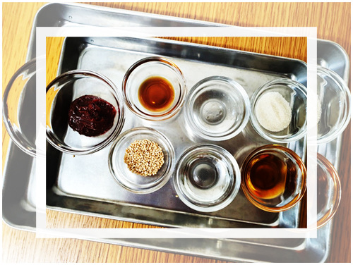 볶음고추장 재료 : 참기름 2스푼, 고추장 4스푼, 고춧가루 1스푼, 간 마늘 1스푼, 설탕 반 스푼