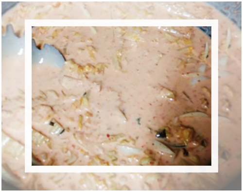 그리고 김치전을 바삭하게 만들기 위해서는 반죽이 질어야 한다. 그렇기 때문에 물 1컵을 바로 붓지 말고 김치전 반죽의 질은 정도를 살펴보면서 나눠 넣기 바란다. 그다음 고춧가루 2스푼까지 넣어주면 된다. 만약 색감을 신경 쓰지 않는다면 고춧가루는 사용하지 않아도 좋다.