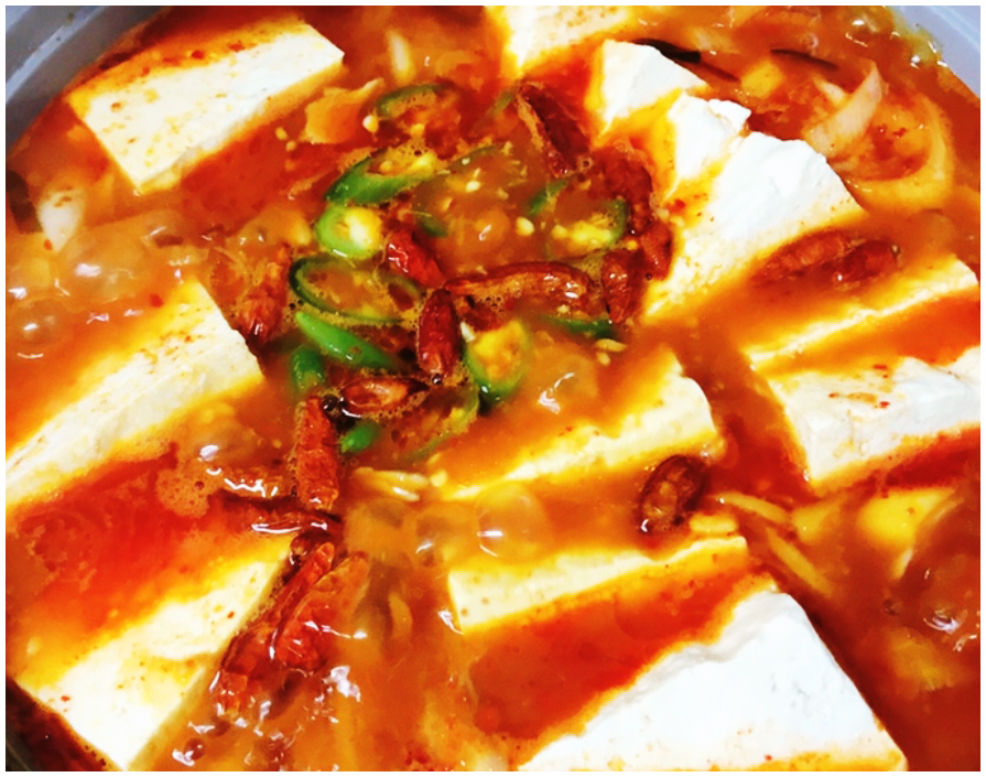 추가과정으로 고추와 대파 두부를 사용할 예정이라면 냄비의 한쪽으로 두부를 넣어주면 된다. 대파와 고추의 경우에는 끓어오른 다음 넣어준다면 좋겠지만 귀찮다면 냄비에 재료들은 담는 과정에서 담아도 크게 영향은 없다. 참치 옆에, 다른 재료들보다는 위로해서 대파와 고추를 올려주자.