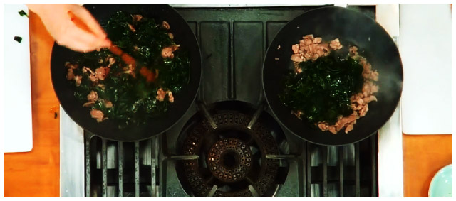 소고기 미역국 4. 소고기가 노릇노릇해지면 미역을 넣고 한번 더 볶아주도록 하자. 오래 볶을 필요 없이 3분가량만 볶아주면 된다.