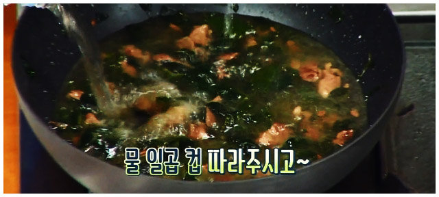 소고기 미역국 5. 미역까지 잘 볶아줬다면 물을 부어주도록 하자.