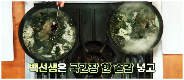 소고기 미역국 6. 국간장 1스푼을 넣어주도록 하자. 만약 진간장을 사용한다고 해도 같은 양을 넣도록 하자. 진간장이 국간장보다 기본적으로 짠맛이 강하기는 하지만 1스푼이면 크게 차이 없다. 그다음 30분간 중불로 끓여주면 맛있는 백종원 소고기 미역국이 완성된다.
