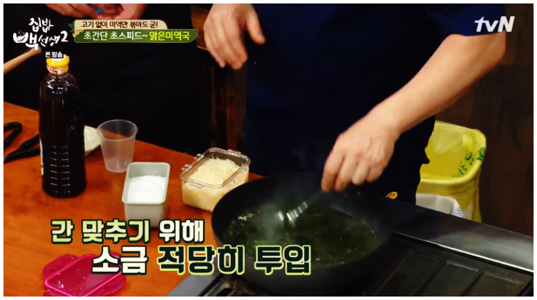 소고기 미역국 6-2. 간장으로 간이 부족하다면 소금을 넣어서 맞춰주면 된다. 소금의 종류는 상관없다. 조금씩 넣어가면서 자신한테 맞는 간을 맞춰주면 된다.