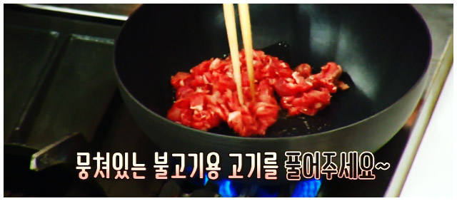 소고기 미역국 2-1. 전자레인지에 30초 동안 돌린 다음 상온에서 30분간 해동을 진행했다면 바로 볶아주도록 하자.