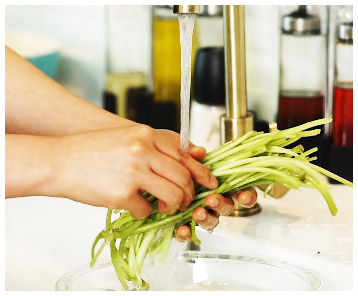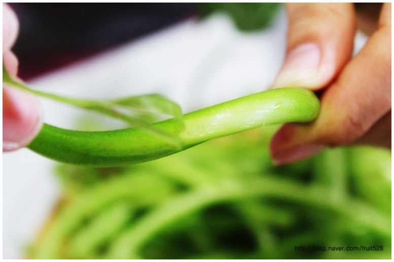 고구마줄기 볶음 1-1. 불리는 정도는 고구마줄기를 마졌을 때 부드러운 촉감이 느껴지는 정도이다.