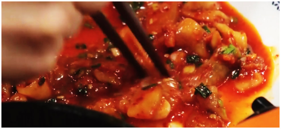 백종원 노각무침 7. 물에 헹궈진 노각은 양념장에 넣어서 버무려준다. 노각오이를 양념에 버무려줄 때는 빡빡 문지르듯이 버무려주면 더욱 좋은 식감이 살아난다.