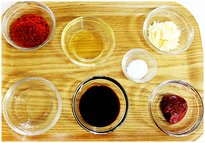 갈치조림 양념장 필수 재료 : 고추장 1스푼, 고춧가루 3스푼, 진간장 3스푼, 설탕 1스푼, 다진마늘 1스푼, 소주 1스푼