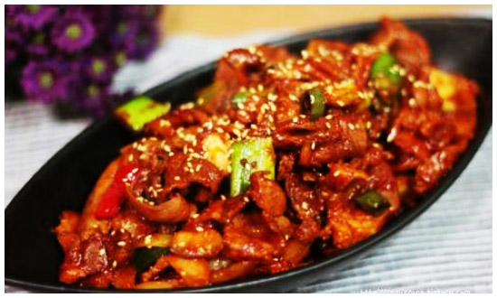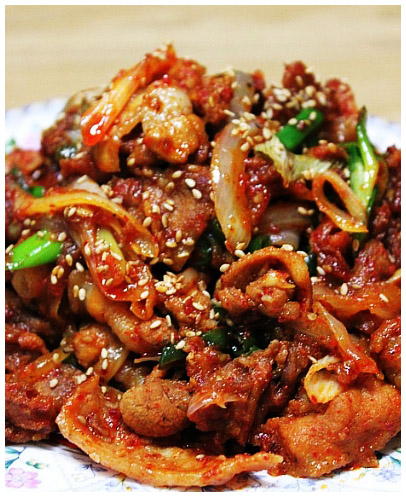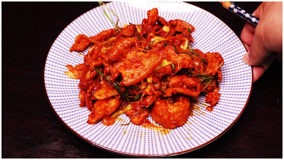 돼지고기 두루치기 10. 완성된 돼지고기 두루치기를 이쁘게 담아 밥과 함께 맛있게 즐기면 된다.