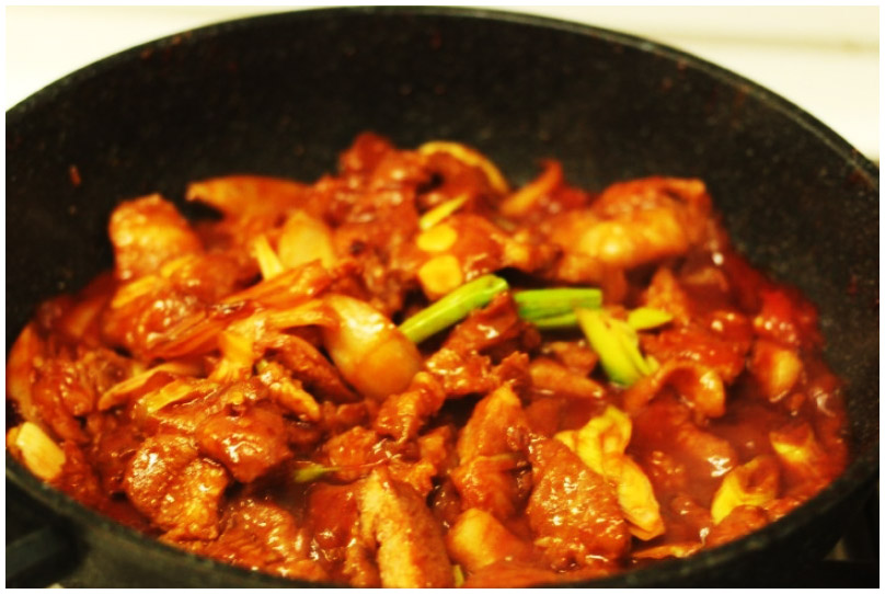 돼지고기 두루치기 6-1. 물의 양은 돼지고기가 살짝 잠길 정도로 넣어주면 된다.