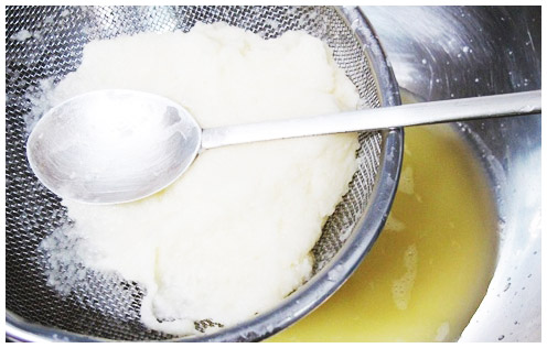 감자전 만들기 황금레시피 4-3. 만약 감자 전분만을 이용해서 쫄깃함이 극대화된 감자전을 만들고 싶다면 30분도 그대로 뒀다가 위에 떠오르는 물기를 제거한 다음 감자전을 만들어줘도 된다.