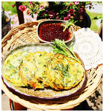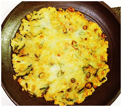 재료 : 감자 3개, 양파 1개, 잘게 썰은 부추 1컵, 부침가루 2스푼, 물 1/4컵 (50ml), 소금 1꼬집, 식용유 3스푼