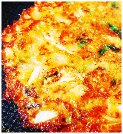 감자전 만들기 황금레시피 9. 팬이 적당히 달궈졌다면 감자전 반죽을 올려서 부쳐준다.