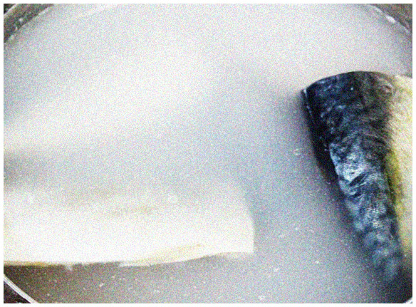 고등어무조림 1-1. 만약 구입해온 고등어가 생고등어라면 상관이 없겠지만 자반 고등어라면 짠맛이 강하기 때문에 물에 30분정도 담궈 뒀다가 사용하자. 만약 쌀뜨물이 있다면 쌀뜨물에 담궈 놓는 것이 좋다.