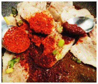 제육볶음 레시피 5-1. 여기에 들어가는 양념은 고추장 2스푼, 고춧가루 1스푼, 가장 1스푼, 마늘 1스푼이다. 참기름은 마지막에 넣는다.