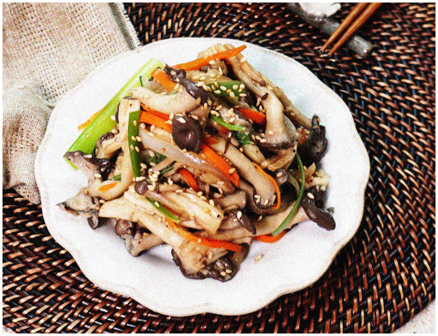 느타리버섯 볶음 8. 마무리로 만약 통깨가 있다면 뿌려주고 이쁘게 접시에 담아주면 느타리버섯 볶음 황금레시피 완성이다. 맛있는 식사가 되기 바란다.