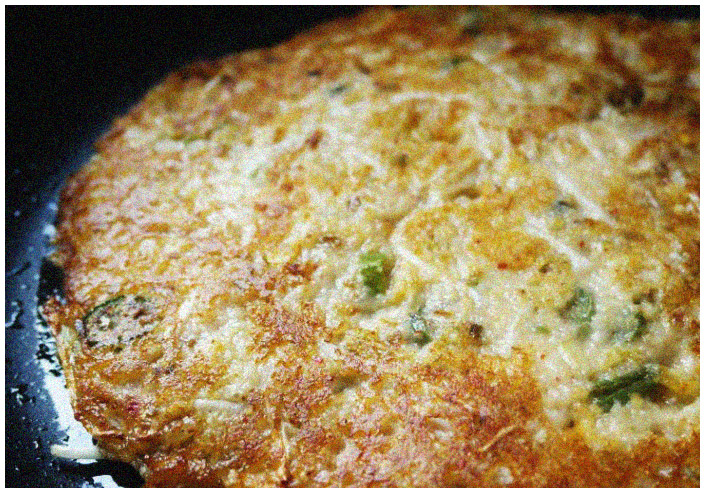 녹두전 만드는 방법 11. 잘 섞였다면 식용유를 충분히 둘러서 가열시킨 팬에 두툼하게 올려서 익혀주면 된다. 불 세기는 절대 중불 이상 올리면 안된다. 녹두전은 두꺼워야 맛있고 두꺼운 녹두전을 골고루 익히기 위해서는 약불에 장시간 익혀야 한다.