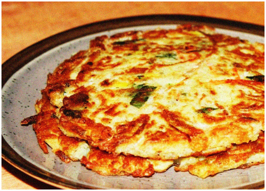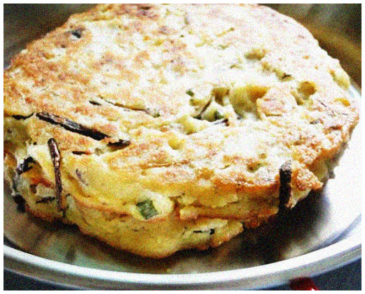 녹두전 만드는 방법 12. 녹두전의 가장 자라리 부분이 노릇하게 익혀졌을 때 뒤집어주면 된고, 녹두전의 속이 익혀진 정도를 알고 싶다면 녹두전 가운데에 십자 모양을 내보길 바란다. 보다 명확하게 익혀진 정도를 알 수 있을 것이다.