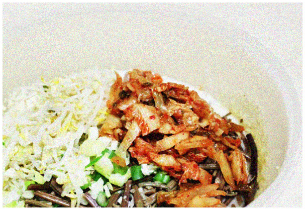 녹두전 만드는 방법 5. 숙주를 다졌으면 이번에는 김치 차례이다. 김치는 만약 신맛이 강하다면 속을 살짝 헹궈낸 후 사용하길 추천한다. 그렇다고 너무 익지 않은 김치는 녹두전과 어울리지 않는다. 차라리 쉰 김치가 더욱 잘 맞을 것이다. 그렇게 선택한 김치도 마찬가지로 잘게 다져준다. 숙주보다도 작은 크기로 썰어줘야 한다.