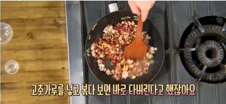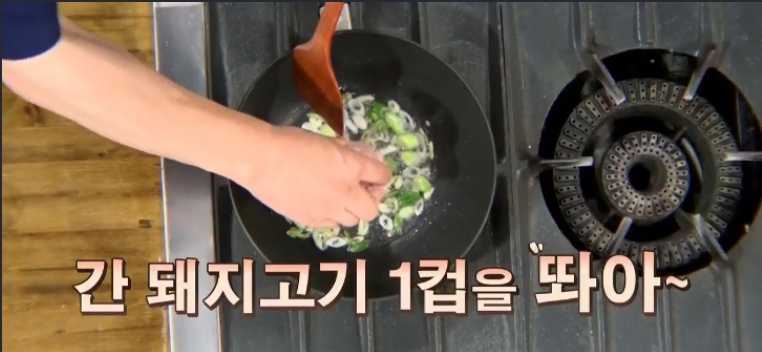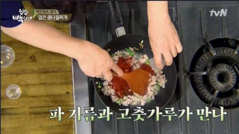 백종원 콩나물국 끓이는 법에는 특이하게도 파기름이 사용된다. 우선 냄비에 식용류를 넣어서 가열시켜주고 적당히 달궈지면 파를 넣어서 파향이 잘 베어 나오도록 달달 볶아준다. 파향이 진하게 난다면 파기름이 완성된 것이니 여기에 간 돼지고기 1컵을 넣어서 같이 볶아준다. 솔직히 필자는 여기에 간만 해서 먹어도 좋다고 생각이 들었다….크흠 간 돼지고기가 파기름과 잘 섞여서 완전히 구워지기 전에 고춧가루 3큰술을 넣고 불맛이 가득한 고추기름의 풍미를 더해줘야 한다. 묘하게 짱뽕 레시피가 생각이나는 건 기분탓이다…