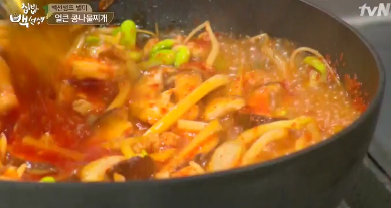 콩나물에 물까지 추가가 완료되었다면 먹기 좋은 크기로 썰어 놓은 버섯과 양파, 그리고 잘게 썰어 놓은 고추와 파를 넣고 끓여주면 된다. 여기까지 완료되었다면 이제 간을 맞춰주면 된다. 여기서 백종원 선생님의 포인트가 있다. 간은 어떤 걸로 맞춰도 상관이 없는데 새우젓이나 멸치액젓으로 간을 맞추게 되면 감칠맛이 남아서 파기름의 느끼함을 잡아주면서 깔끔한 맛을 강화해준다고 하니 꼭 써보기를 바란다. 여기에 추가적으로 소금과 간장으로 자신의 입맛에 맞춰주면 요리는 완성이 된다.