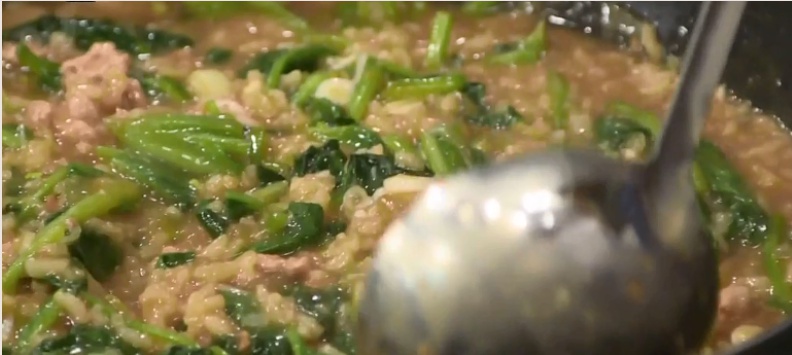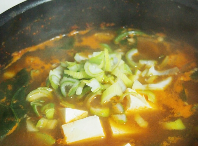 충분히 끓였다면 끝나기 직전에 시금치와 대파를 넣어서 완성하면 된다. 시금치의 경우 숨이 빨리 죽고 흐물흐물해지기 때문에 끝나기 직전에 넣어주는 것이 좋다. 특히나 끓이는 단계가 끝난 후에 남는 잔열에도 계속해서 익으니 정말로 시금치를 넣고 바로 불을 꺼주면 된다고 생각하면 된다. 이렇게 완성된 된장국은 백종원 선생님은 밥을 도중에 넣어 죽으로 만들어 드셨는데 한번 해보길 추천한다. 앞선 단계에서 되장을 1큰술 줄이고 채소와 함께 밥을 넣으면 죽의 즐거움도 즐겨볼 수 있다.