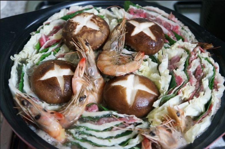 수미네반찬 밀푀유나베 레시피의 본격적인 조리과정을 살펴보겠다. 생각보다 간단한 과정을 통해서 진행되서 어려움은 없지만 재료들을 한장한장 다뤄야 한다는 게 많이 귀찮을 뿐이다. 밀푀유나베의 주가될 재료들은 일단 새척만 해서 준비를 해주고 본격적으로 모양을 내기 전에 육수를 올려 놔주자. 앞서 준비했던 물 1리터에 육수팩을 넣고 끓여주면 된다. 시간은 오래 끓여줄수록 좋으니 최대한 오래 끓여주자. 그렇다고 조금 끓인다고 해서 육수가 우러나오지 않는 것도 아니기 때문에 너무 무조건 오래 끓여야 할 필요는 없다. 못해도 20분정도를 권장하고 싶다. 육수가 잘 우러나오면 팩을 건지고 다진마늘 1큰술, 후춧가루 약간, 양조간장 2큰술, 새우젓 1큰술을 넣고 5분정도를 더 끓여주면 된다.
