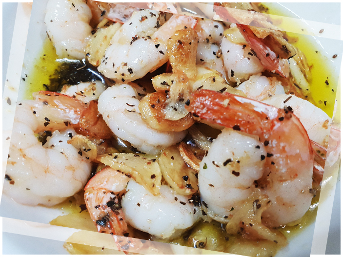 모든 재료의 손질까지 마무리가 되었다면 이제 본격적으로 새우감바스 만들기 방법에 대해 알아보도록 하겠다. 우선은 칵테일새우, 혹은 손질된 새우에 후추로 소금과 후추로 밑간을 해서 준비하도록 하자 좀더 간이 골고루 베어있는 새우를 즐기고 싶다면 말이다. 물론 밑간을 하지 않아도 상관은 없겠지만 밑간을 하는 편이 혹시나 있을지 모르는 비린맛도 잡고 식감은 미묘하지만 더욱 좋게 만든다.