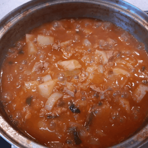 모든 재료가 준비되었다면 이제 본격적으로 백종원 감자짜글이찌개 황금레시피를 살펴보도록 하겠다. 감자짜글이찌개를 하는데 육수를 준비하는 사람을 있을테지만 간단한 과정을 중시하는 필자로서는 있을 수 없는 일. 그냥 쌀뜨물정도면 육수로서 충분하다 쌀뜨물을 냄비에 담아서 손질해놓은 재료들을 모두 넣고 끓여주면 된다. 감자, 양파는 앞서 말했듯 먹기좋은 크기로 썰어서 넣으면 되고 스팸은 으깬 상태로 채소들 위에 올려주면 된다. 모든 재료를 넣었다면 1차적으로 끓여주도록 하자