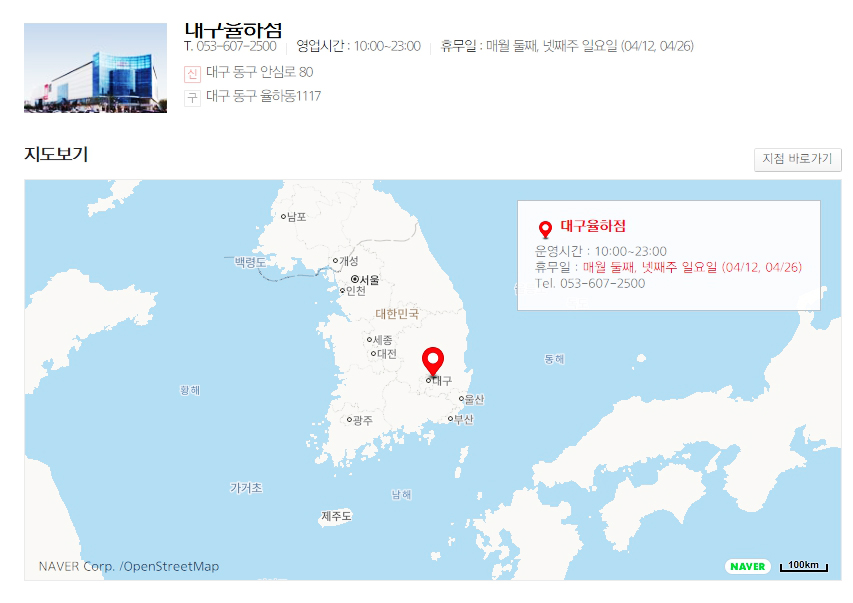 조금은 기억하기 힘든 그런 휴무일을 갖는 매장들이 있다. 경기지역의 상록점, 선부점, 안산점이 그 예시인데 이 세 지점은 2주차 금요일과 5주차 일요일에 휴무일을 갖는다. 뭐 다르게 말하면 다섯째주 일요일은 없는 경우도 많으니 대체로 한달에 하루만 휴무일을 갖겠다는 소리인 것 같다. 나름 편할지도 모르겠다는 생각이 들기는 하지만 기억하기는 귀찮다. 경기지역은 이 세지점을 제외한 모든 지점이 2주차와 4주차 수요일 혹은 일요일에 휴무일을 갖는다.